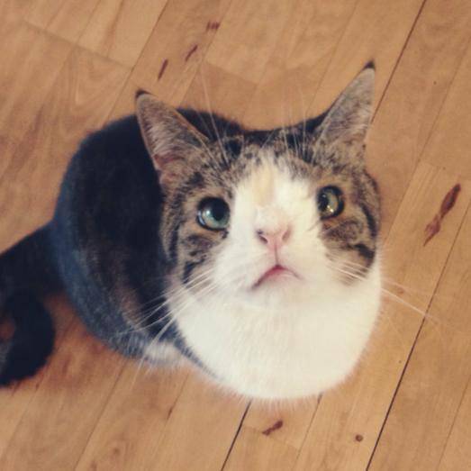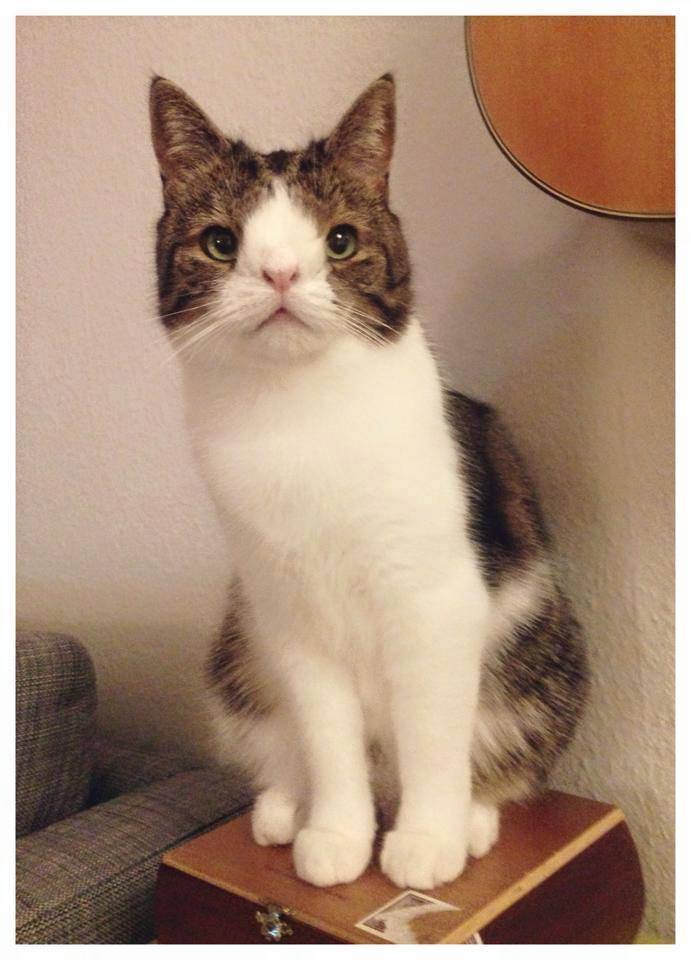 The first time we saw Monty was at the end of August 2013. Mikala was sitting, looking for shelter cats on a website just for fun, since we were not looking for a new furry friend for our little family. However, then she came across Monty and got so excited that she of course showed me his cute face. We of course wanted to meet Monty and went to the shelter. We were both certain that we should not have more cats. We went to the room where all the indoor cats were and met Monty for the first time. He was playfully fooling around in the center of the room. Most of the other cats were insecurely sitting in the corners. And when Monty got over to them they all hissed and struck out, but Monty did not do anything he just backed out easily and went on. It then occurred to us that he was a very social cat. He had only been in the shelter for a few months. Michael went over to him and took him up and since he did not know who he was and what he was doing he said a little insecure “meow”. However he did not struggle to get away. Michael looked him into his eyes and blinked-smiled at him, as he has seen cats do, and started stroking him gently on his head. He got completely relaxed and he laid him down on his back in my lap (as you can find him laying in Michaels lap on several photos on Facebook) and then it happened; we saw his personality and we are sure he saw ours and liked what he saw. From that moment we both started creating a very strong bond with Monty. We tend to think that we did not choose him but he chose us.