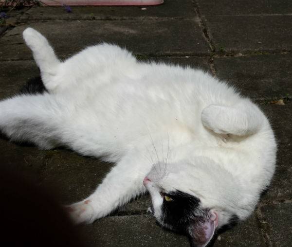 I like to play with the birds in our garden, the butterflies and frogs, but I won’t harm them. I can’t catch them anyway, they’re faster then me anyway. I don’t play with toys, like a mousie, they scare me. I’m running away for them. Living mousies are a different story 😉