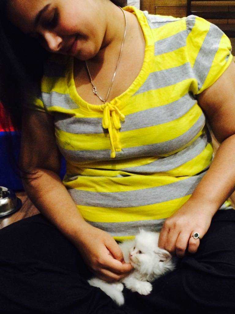 But Snowy is amazingly brave. My beautiful, blue-eyed Persian baby has had more injections, medicines and care than most kittens of his age. Yet, he manages to be happy, play with my sister and sit on my lap as I type this.