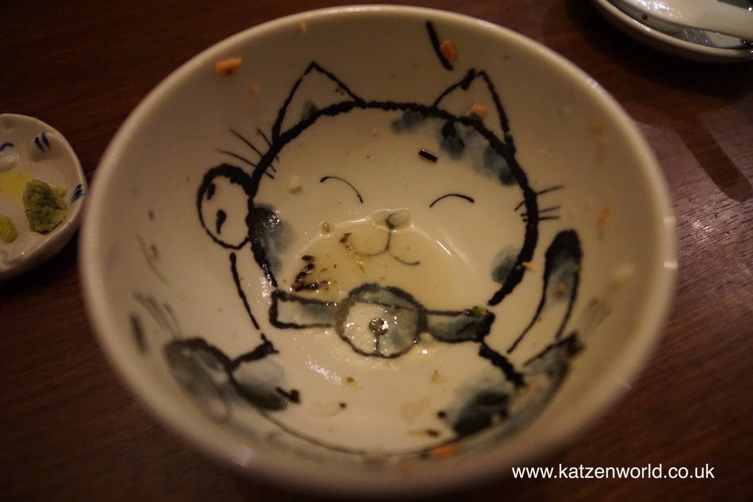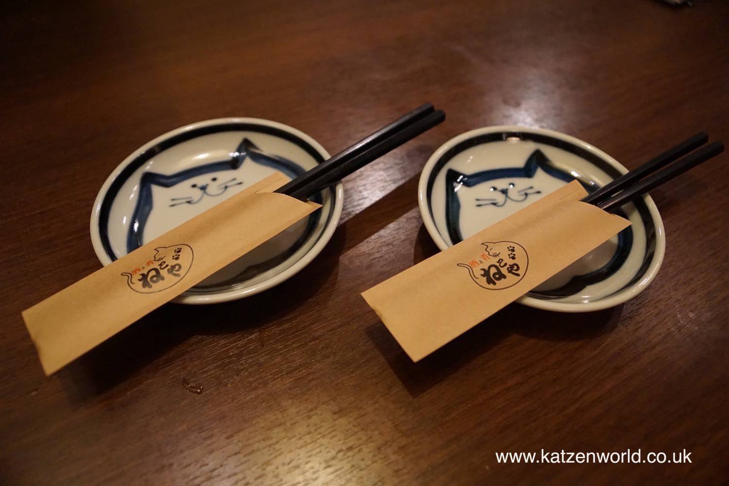 As we opened the door and walked in we guessed that there were no actual cats inside but weren’t expecting to find such a treasure trove of everything to do with cats. Every corner of the place was covered in cat related items from cute collections of cat figurines, posters and even bottles of sake. One of the posters features a rework of one of Marc’s favorite anime “Uch? Senkan Yamato – Space Battleship Yamato” changing “Yamato” to “Nyamoto”; “nya” being the Japanese word for “meow”. Although there were no cats in sight there was a wall of photos showing customer’s cats.