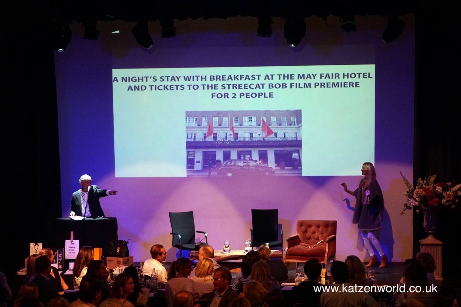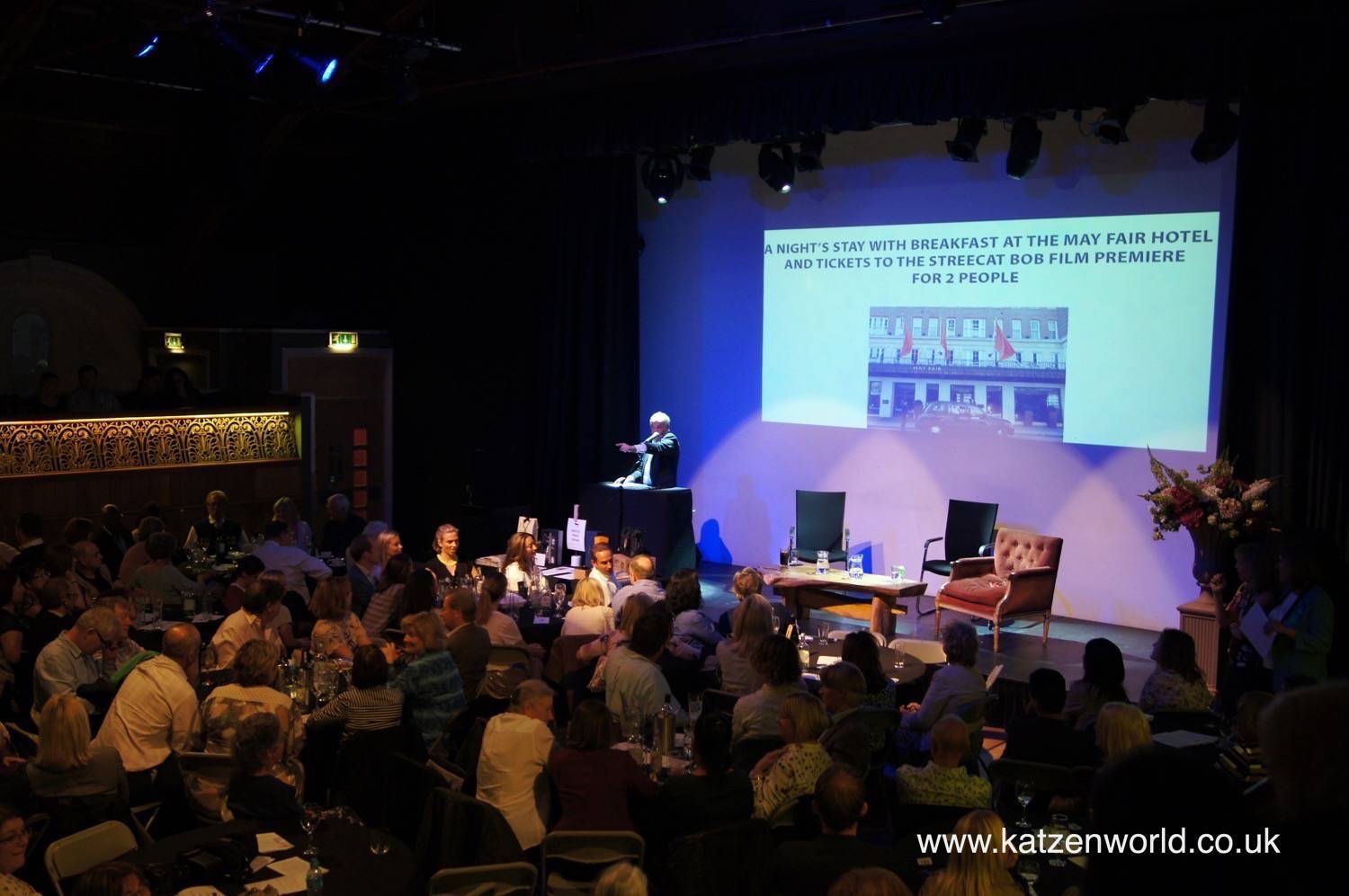 - Top item was a night at the 5* May Fair Hotel and tickets to the opening of the Street Cat Bob film. The May Fair donated the night at the hotel and Adam Rolston donated the tickets. It went for £2400 to a big Bob fan! James has said he will bring Bob for a private audience with the winner on the day of the opening.