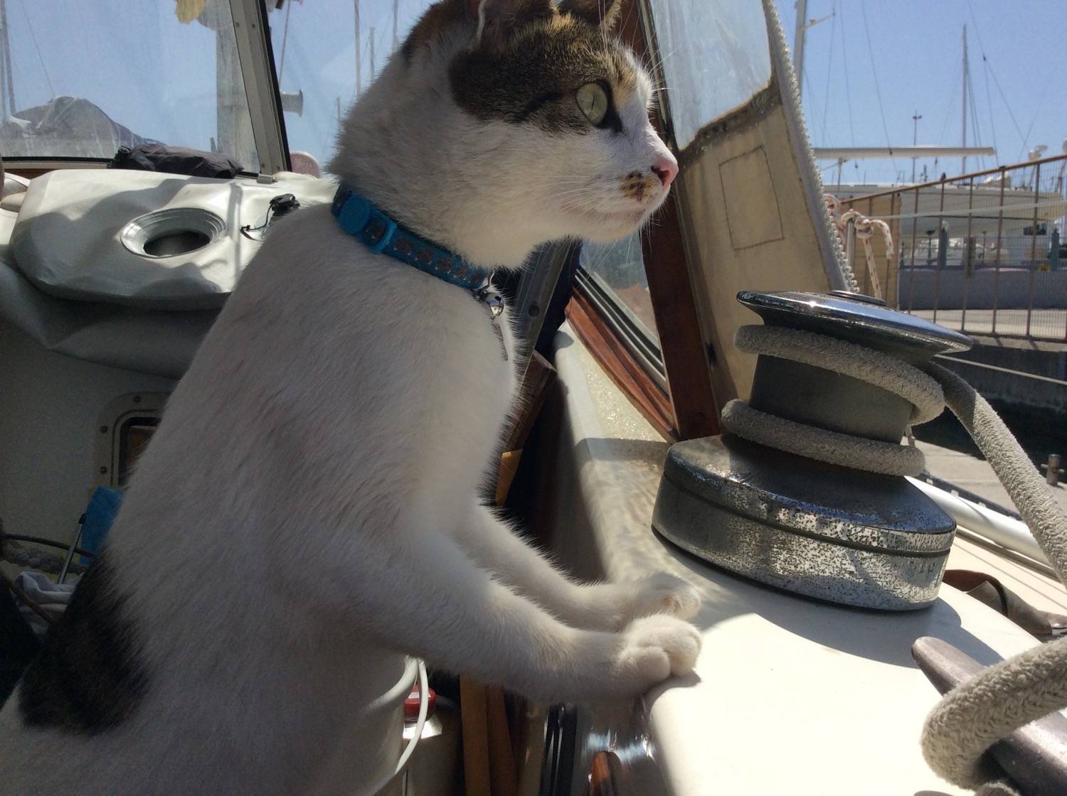 What a lovely adventure cat ! Do you know Bailey The Boat Cat, Artemis ? He lives part-time on a boat, just like you ! Purrs