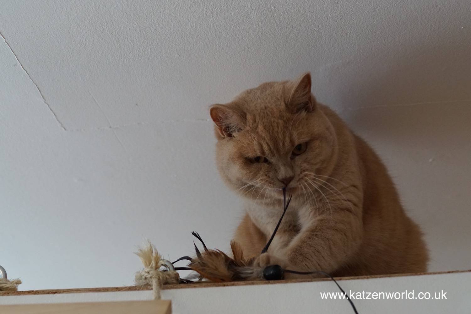 And of he goes to obtain his feather toy back… 😉