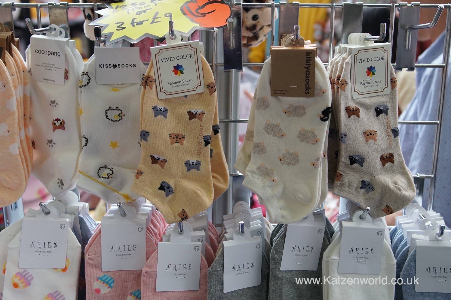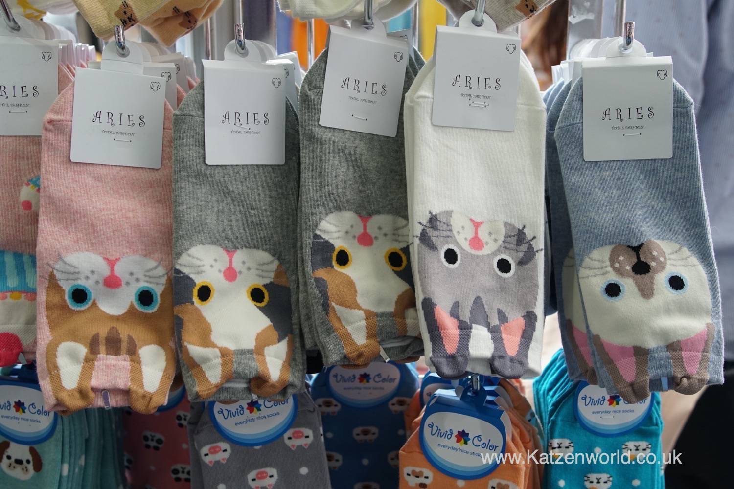 As if cat jewelry and cuddly cute toys wasn’t enough we spotted some cat socks hanging around upside down just like Nubesy. I don’t think my size 10 feet would fit in them but I’m sure if they did they’d look great with my suit at work 🙂