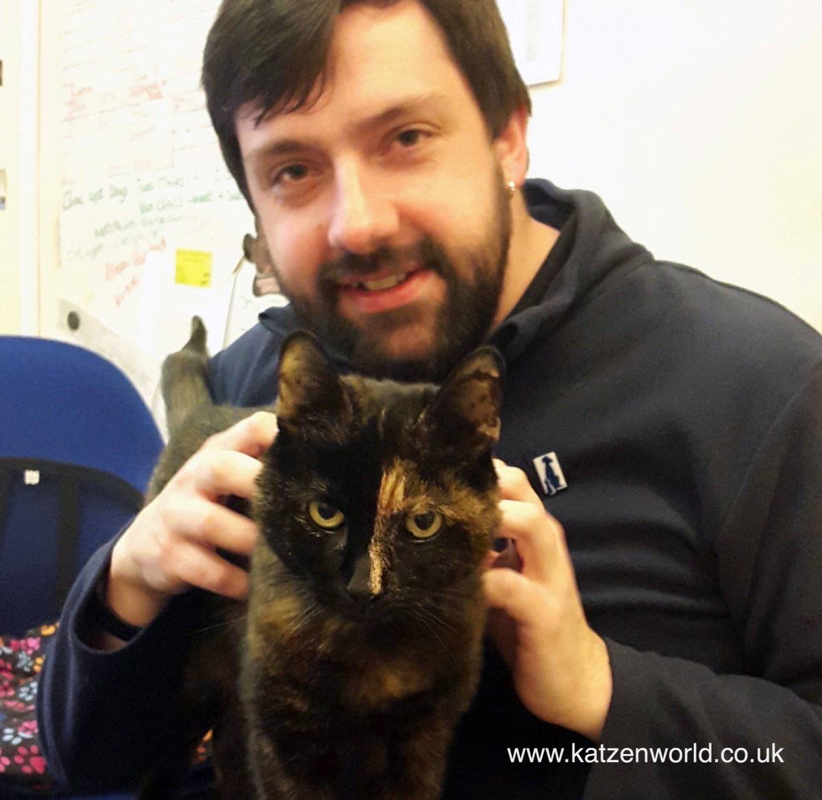 We have a senior cat, Sweepy. She’s our tripawed torbie girl. She was my partner’s nan’s cat, and had to be rehomed when nan went into a nursing home.