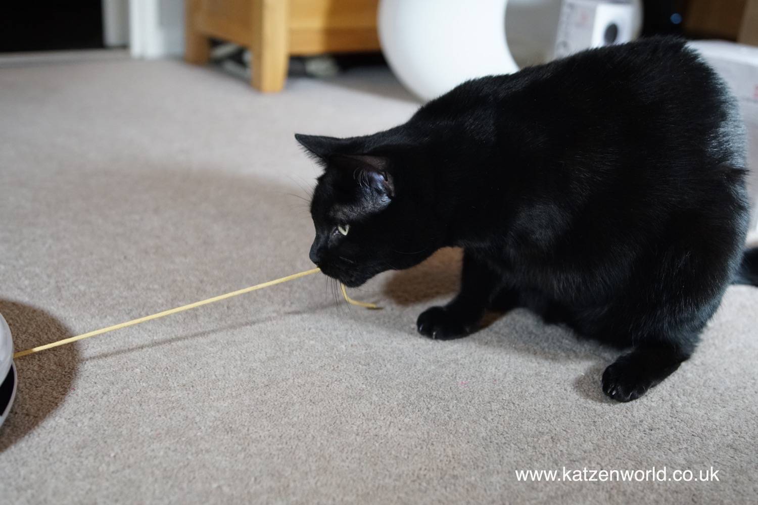 My Dylan loves string, but I’d be afraid he’d find a way to “get” the string and eat it! He’s like that! >^..^<