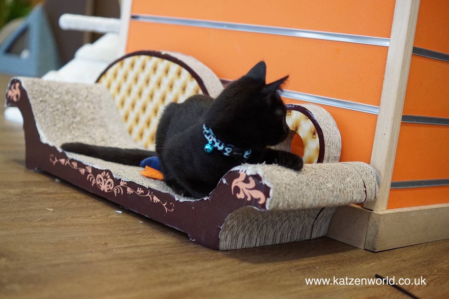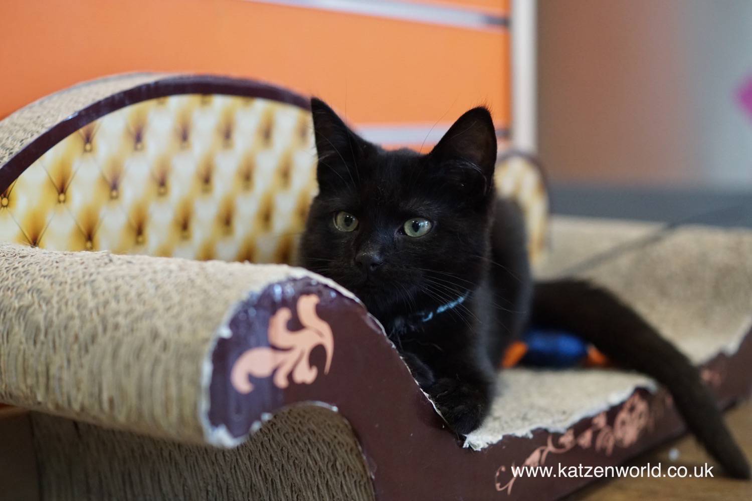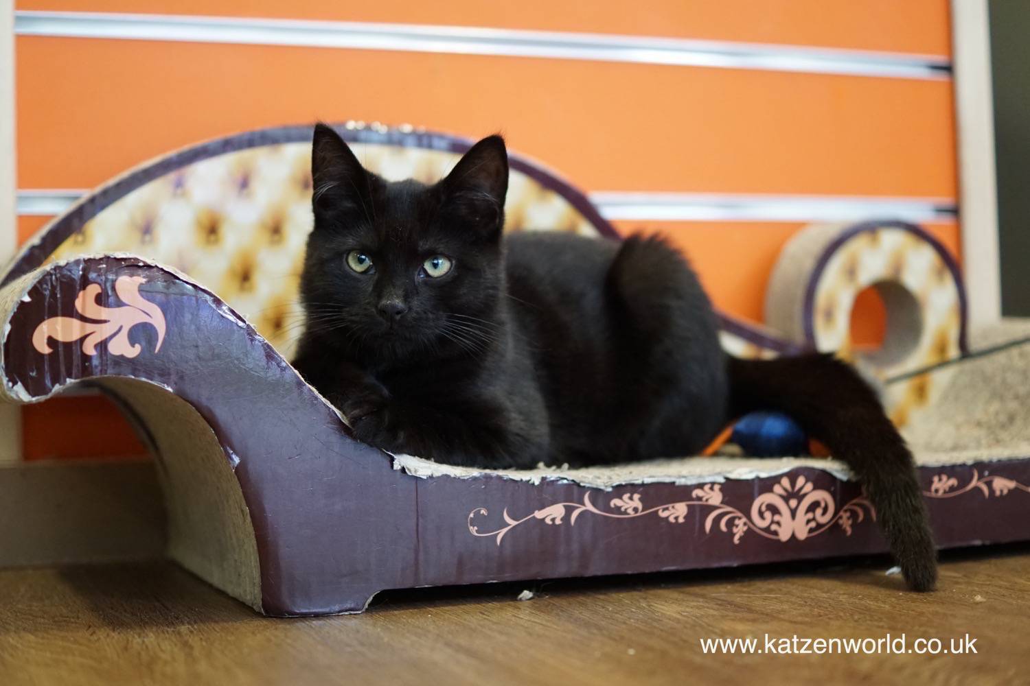 When we first spotted the little one he (we assume he simply because of his naughtiness! 😉 ) was on a well used scratcher sofa. 😮