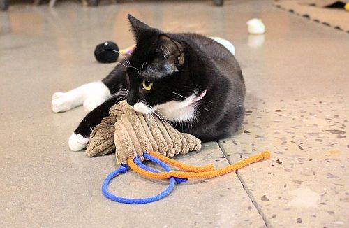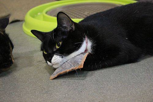 We thought that this black and white chap was especially adorable! And he got super lucky as he got to try out our new premium rustling cushion AND our new premium cuddly cushion. 🙂