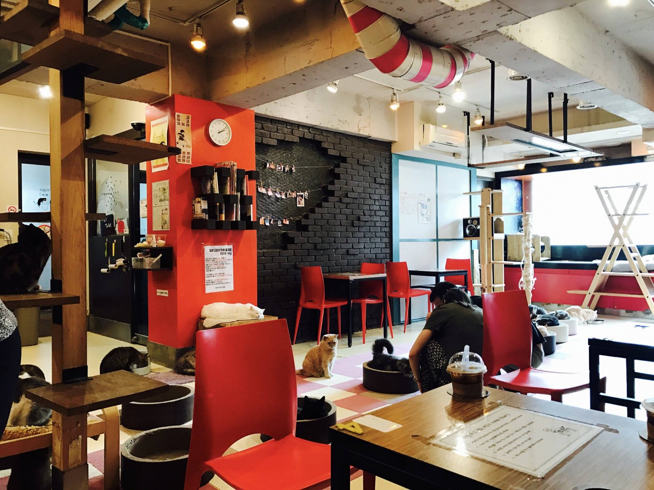 There are several cat cafes to choose from in this neighborhood, but I found Cat Playground stands out for offering a clean, odor-free atmosphere and happy (albeit some quite overweight) kitties.
