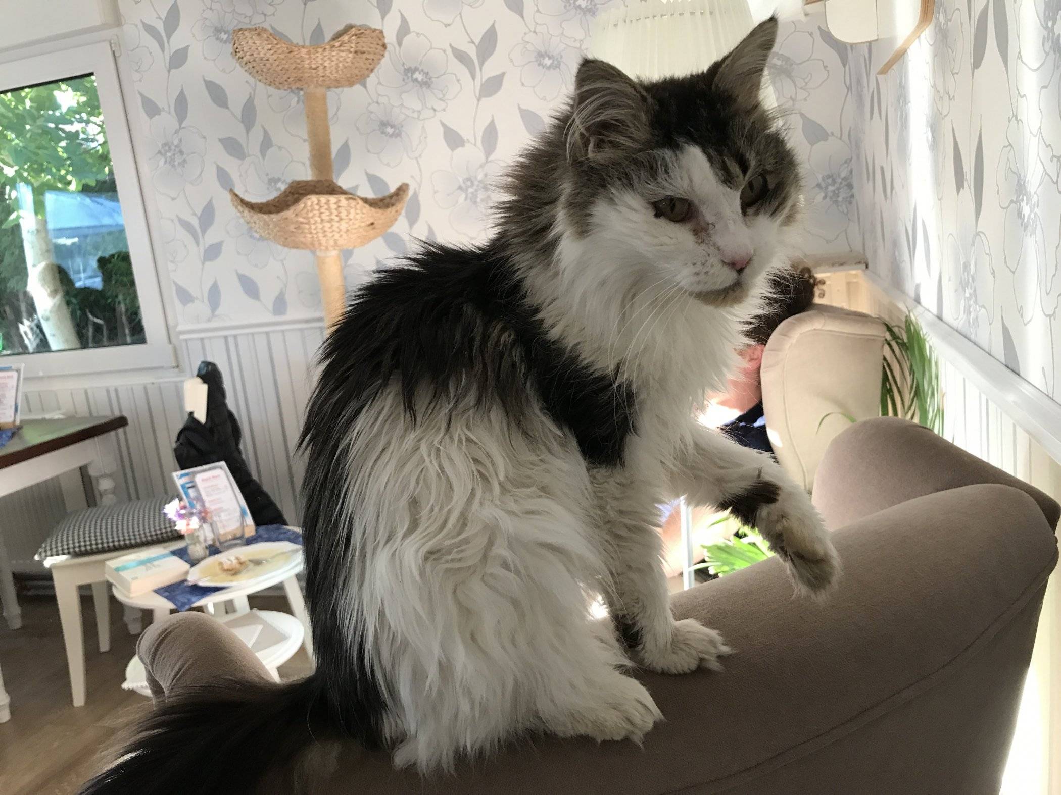But I was here for the cats, famed residents Pelle and Caruso, rescued as young kittens from the streets of Berlin. Unfortunately, the presence of small children (sweet little things, but noisy!) quickly scared the cats to the far corners.