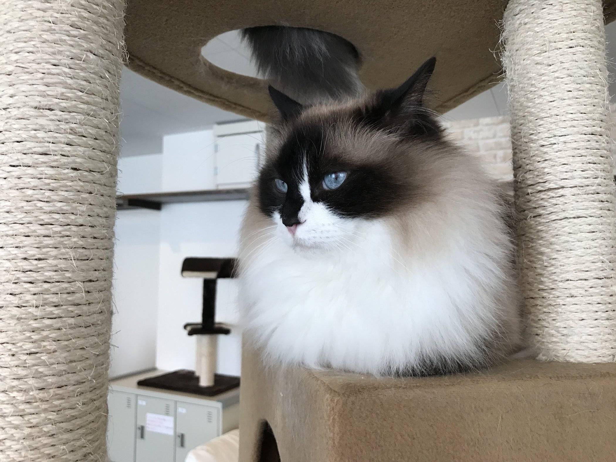 There are 18 cats in residence and the majority were in the play room, where I spent most of my time. With a playful atmosphere, my visit to Cats Gallery was one of the most pleasurable outings I’ve had in a cat cafe, mostly due to the variety of adorable kitties that were extremely social and active. The environment is no accident as the owner, a delightful woman (first photo above), clearly enjoys what she does and despite limited English, engaged with visitors and encouraged interaction with the cats by bringing them over and demonstrating how they liked to dive into paper bags or hop up on backs.