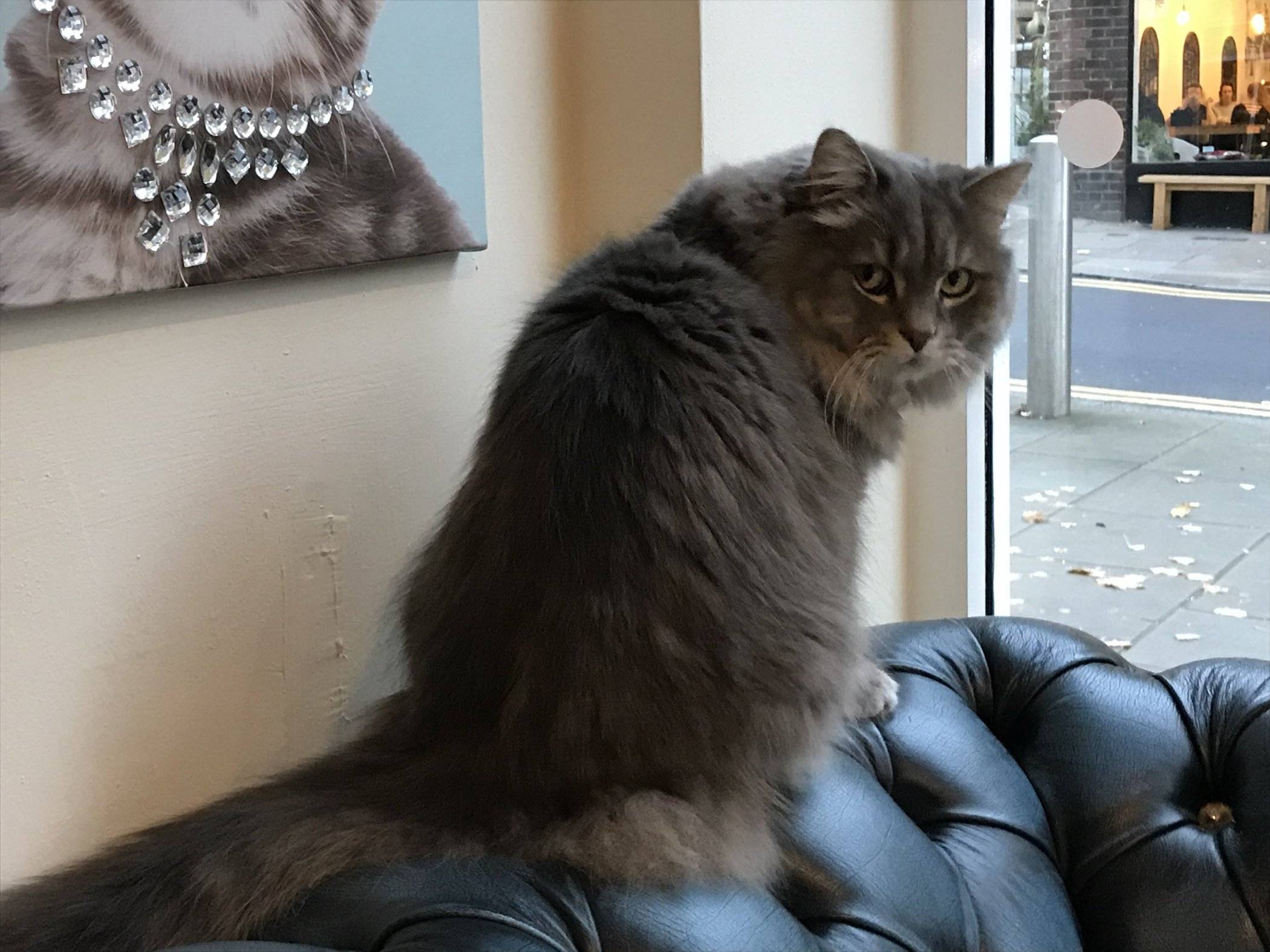 While they have only been open since July, 2017, Charlotte was a wealth of knowledge as we discussed how to create a cat-friendly space (lots of places to get up high), how she was able to do an open coffee bar area (food is all prepared off-site), the animal charities she works with (Mill House Animal Sanctuary& Pet Samaritans) and, of course, loads of stories about the cats.