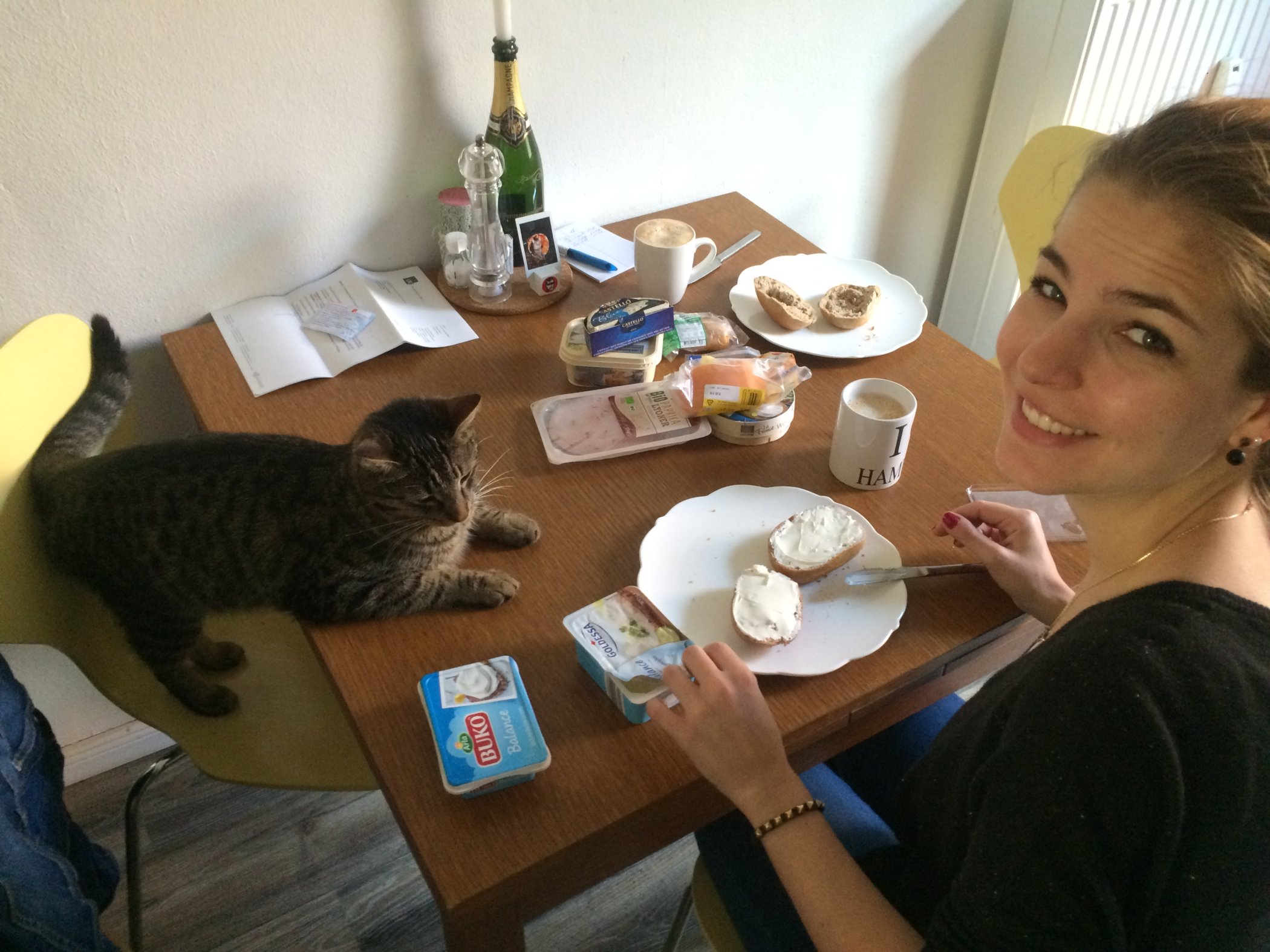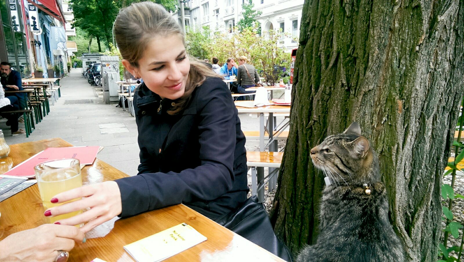 Mr. Mau did not get this opportunity. He learned most of what he knew from us. So, slowly, he started to act like a little human. He slept on his back, went to cafés with us and had breakfast with us at the table. He literally sat on a chair with his paws on the table! Spending time with him was such a blessing!
