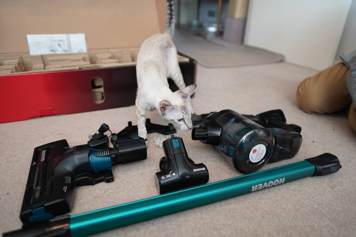 With our little beauty Freya joining us recently, the fight against cat hair, litter, bits of food and now tiny pieces of chewed paper courtesy of QSL, has become a daily task. I’ve never been a big fan of vacuuming – all that hassle of dragging out the machine, unwinding that long cable and then finding a socket to plug it in (usually taking out a calming plug-in). Why can’t it be easier? I’ve tried mini cordless cleaners but found they were just about good enough to pick up a little bit spilt litter from the kitchen floor. So when out of the blue, someone got in touch and asked if I want to try out one of their cordless cleaner, of course I said yes!!! So here’s what happened when the Hoover H-Free HF18CPT 100 turned up…
