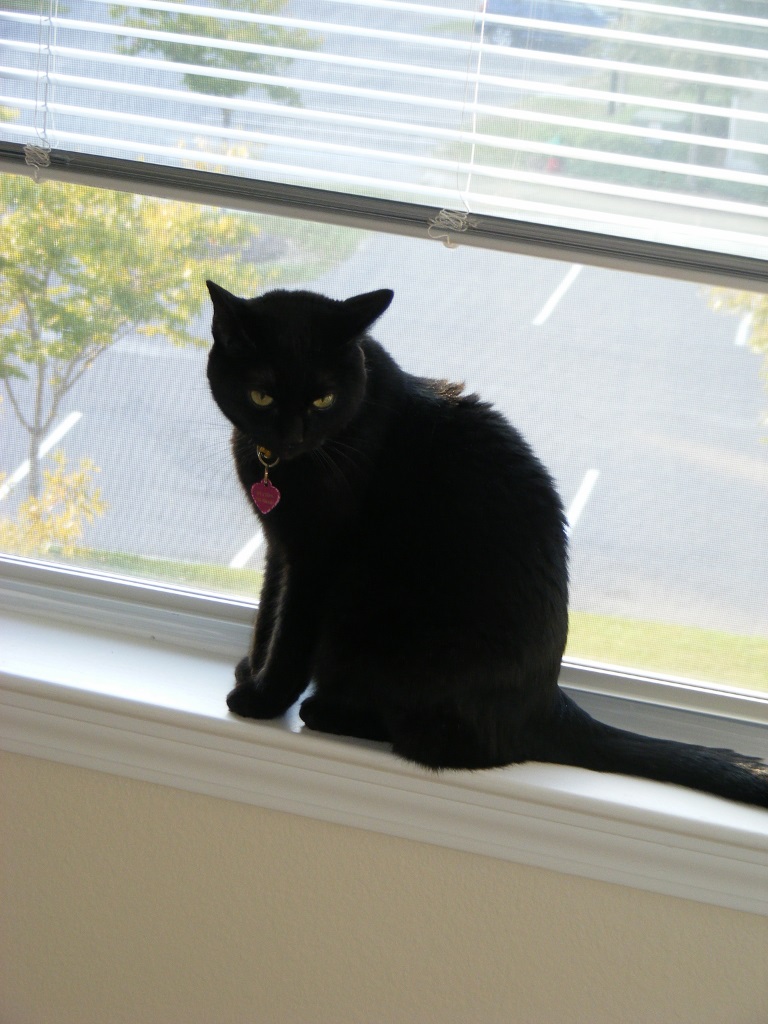 Shadow also liked being on a window sill, or being on the screened balcony, looking down at the world.
