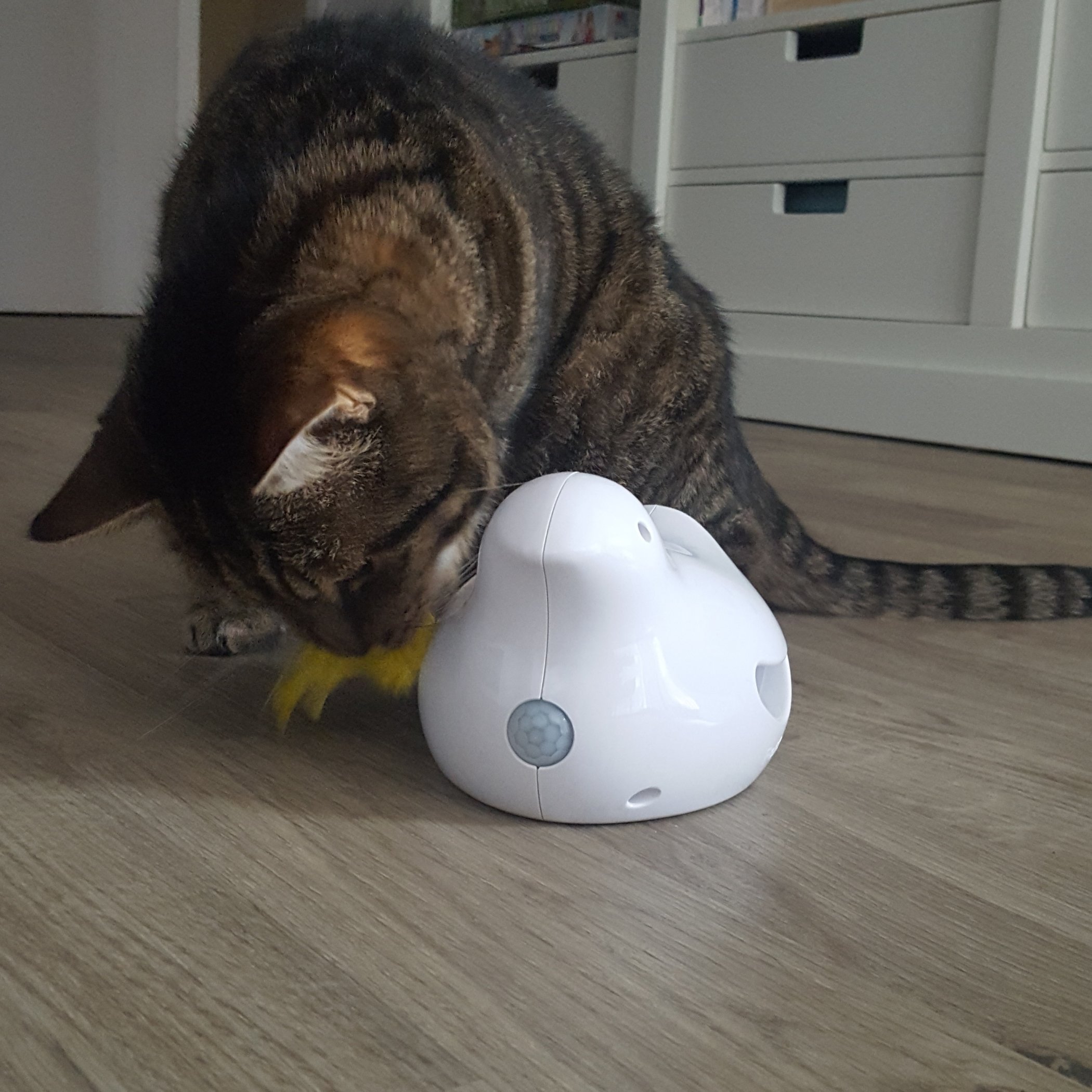 A play session lasts for 10 minutes after which the toy switches off automatically. You can also activate and ‘all day’ mode. The toy then switches on for 10 minutes at a time every two hours. Even better: it also switches on when the sensor picks up movement from your cat. Basically, your cat will have a toy that switches on whenever they want to play! I absolutely love that idea.