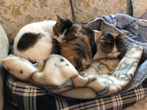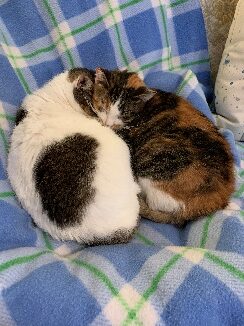 This is both now, they do not get far from each other. Both are heat seeking missiles – neither like the cold and neither one wants to go outside. They like to watch the birds at the feeder but not out!
