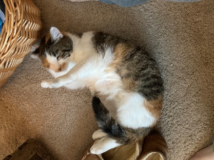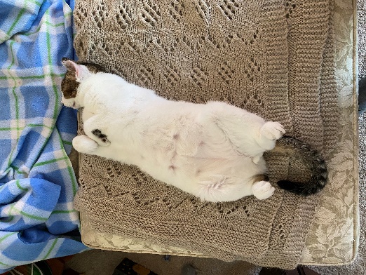 When she was well enough, she came to us. We had her fixed (the cropped ear is due to frost bite) and discovered she had been hit at some time with a leg that had remodeled itself. She was less than a year and 4.2 pounds. To this day, if you rub her tummy she makes biscuits!