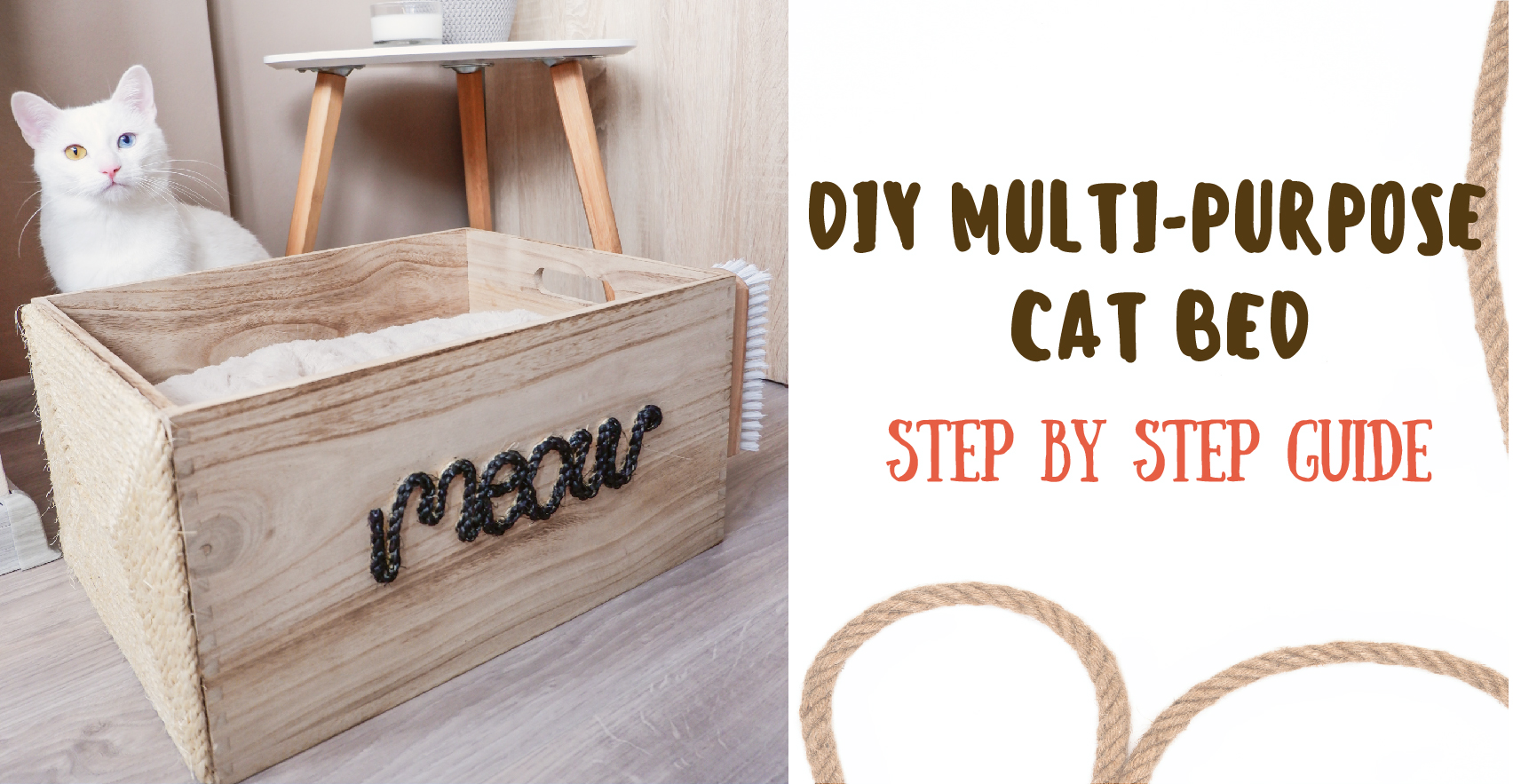 Have you noticed that cats tend to choose to sit and lay in random boxes instead of taking a nap in their own comfy cat bed which probably costs a lot of money? You can prevent this from happening by DIY-ing a cat bed by using a wooden box which not only costs a fraction of the price of a cat bed but your cat will surely love it. As a bonus this is not just a usual cat bed, it has a side covered with sisal rope which acts as a scratching surface, so you can keep your furniture intact. The other side of the box is equipped with a soft bristled shoe brush which acts as a head massager.