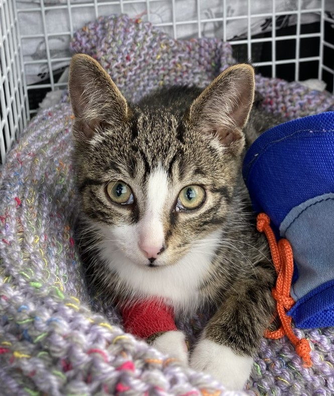 “We all love Bandit, he’s such a spirited boy. He’s just the cutest, bravest little kitten. He’s been the perfect patient, although he doesn’t like wearing his head cone.”