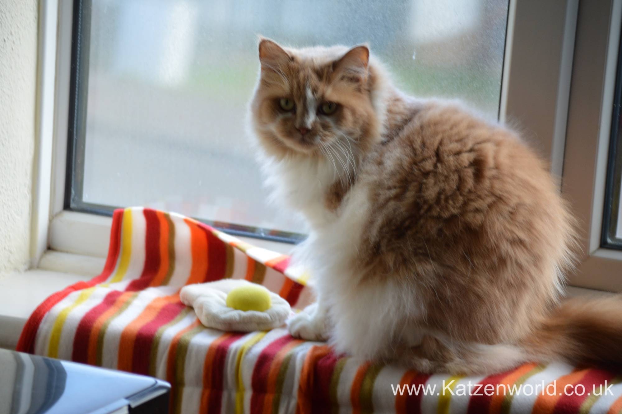 Last Christmas Gracie didn’t have much concept of how to play, it was only a few months since I’d brought these guys home from a sanctuary, but she was thrilled with her ‘fried egg’ then – her first Christmas present – and when she was under the weather recently GB found it in the basket and took it to her – a very wise and clever cat!
