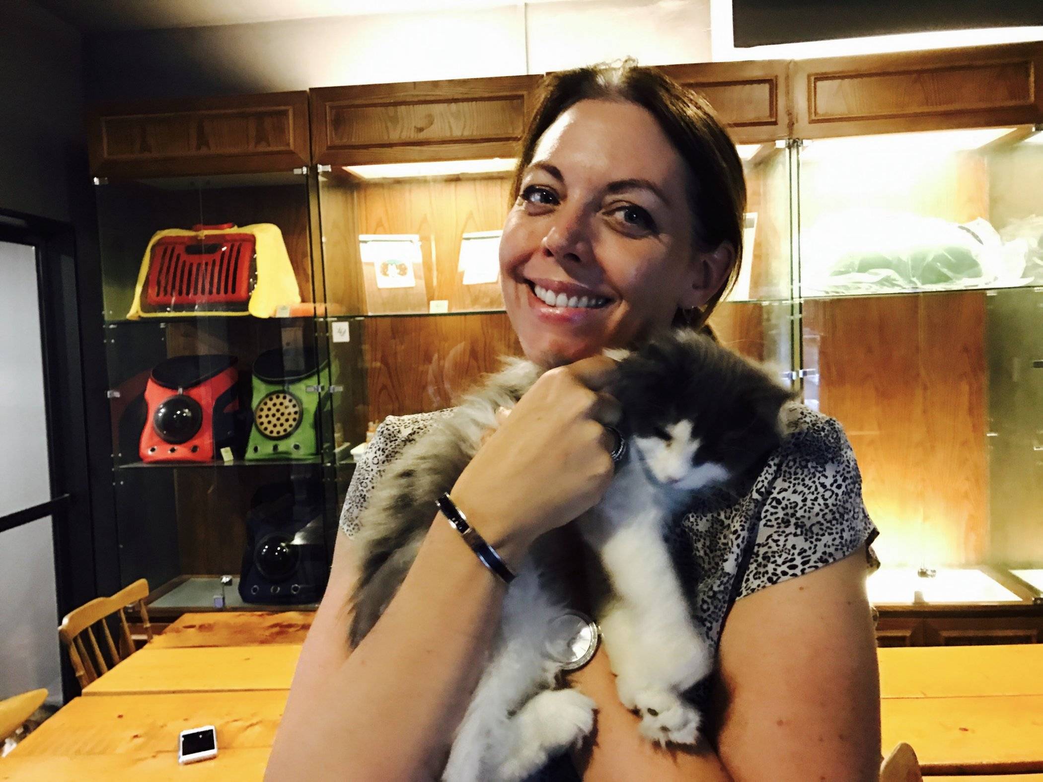 We had the place to ourselves for most of the hour we spent there, only having to share the kitties with a two young college students and a French couple.